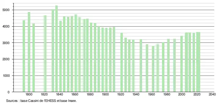 - ↑ Fiches Insee - Populations de référence de la commune pour les années 2006, 2007, 2008, 2009, 2010, 2011, 2012, 2013, 2014, 2015, 2016, 2017, 2018, 2019, 2020, 2021 et 2022.