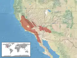 - aux États-Unis en Californie, dans le sud du Nevada et dans l'ouest de l'Arizona ;