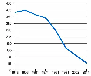 | 389 | 404 | 374 | 353 | 265 | 148 | 100[2] | 49[1] |