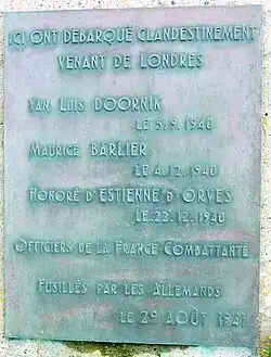 - ↑ André Coquet, né le à Plogoff, déporté de Compiègne vers le camp de concentration de Neuengamme le , mort en déportation le à Engelsburg (Schleswig-Holstein), voir http://memoiredeguerre.pagesperso-orange.fr/deportation/29/p6-list-c.htm.