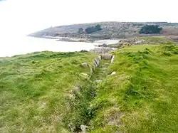 Des murets en pierres sèches remplacent les haies, absentes en raison du vent et des embruns, pour délimiter les parcelles tout le long du littoral.