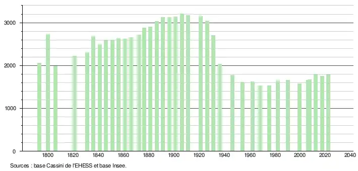 - ↑ Fiches Insee - Populations de référence de la commune pour les années 2006, 2007, 2008, 2009, 2010, 2011, 2012, 2013, 2014, 2015, 2016, 2017, 2018, 2019, 2020, 2021 et 2022.