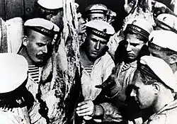 La plongée verticale a servi dès les débuts du cinéma pour permettre une séquence où l'action défie les lois de la pesanteur, le spectateur étant censé ignorer qu'on peut placer la caméra dans n'importe quelle position. Ferdinand Zecca tourne en 1902 La Soubrette ingénieuse, dans lequel une jeune servante, chargée d'accrocher des tableaux, a l'idée de grimper à quatre pattes le long des murs pour pendre les cadres. Le truquage est simple. La toile peinte représentant un mur du salon bourgeois, « est couchée à plat sur le sol du studio et la caméra est hissée au-dessus d'elle, filmant en direction du bas [...] La soubrette joue à genoux sur le décor. Elle peut ainsi faire mine de se mouvoir sur une paroi verticale[12] ». Ce genre de truquage, repris en 1907 par Segundo de Chomón pour Les Kiriki, acrobates japonais, a été plusieurs fois utilisé depuis. Ici, un film non identifié, tourné en 1914, où une sirène nage dans les profondeurs aquatiques.