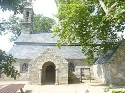 Le placître entourant la chapelle correspond à l'ancien cimetière ; son mur d'enceinte contient dans sa partie ouest une croix pattée datant du Moyen Âge[23] et dans l'angle sud-est une croix monolithique de section octogonale[24]. L'ancien presbytère est situé à proximité. Le pardon est célébré le premier dimanche de mai.