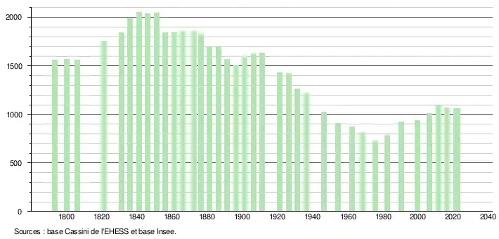 - ↑ Fiches Insee - Populations de référence de la commune pour les années 2006, 2007, 2008, 2009, 2010, 2011, 2012, 2013, 2014, 2015, 2016, 2017, 2018, 2019, 2020, 2021 et 2022.