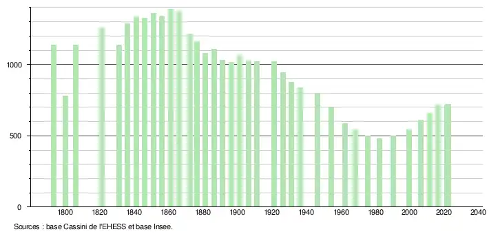 - ↑ Fiches Insee - Populations de référence de la commune pour les années 2006, 2007, 2008, 2009, 2010, 2011, 2012, 2013, 2014, 2015, 2016, 2017, 2018, 2019, 2020, 2021 et 2022.