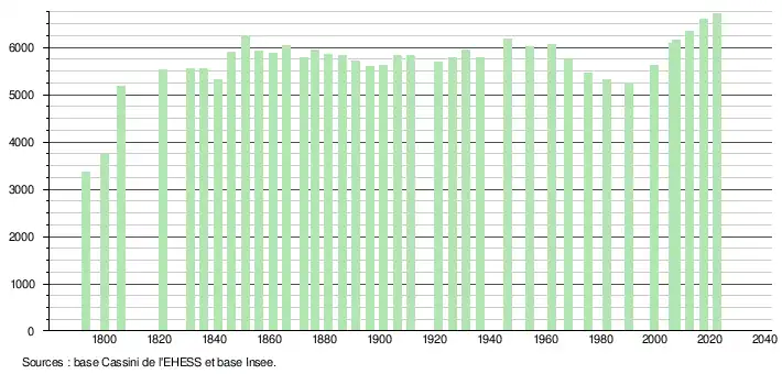 6 719 hab. (2022 en évolution de +2,6 % par rapport à 2016)