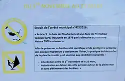 La Baie de Plouharnel est une Zone de protection spéciale instaurée en 1979 par la directive européenne Natura 2000 « oiseaux » ; afin de protéger sa biodiversité et les oiseaux migrateurs qui la fréquentent, la pratique du kite surf et de la planche à voile y sont interdites entre le 1er novembre et le 31 mars.