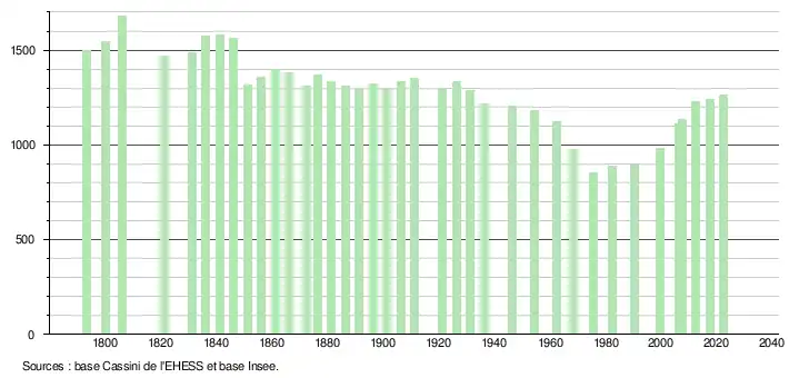 - ↑ Fiches Insee - Populations de référence de la commune pour les années 2006, 2007, 2008, 2009, 2010, 2011, 2012, 2013, 2014, 2015, 2016, 2017, 2018, 2019, 2020, 2021 et 2022.