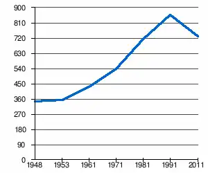 - 1 2 (sq) « Évolution de la population 1948-2011 », sur pop-stat.mashke.org (consulté le ).