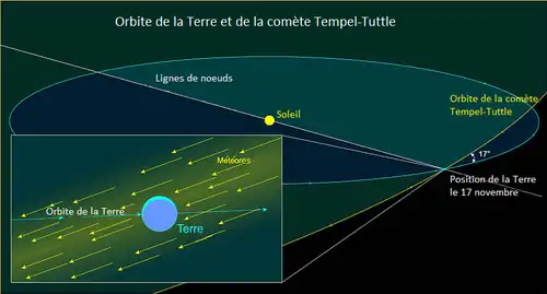 Associées à la comète 55P/Tempel-Tuttle, les Léonides peuvent être repérées pendant toute la période du 6 au 30 novembre, le maximum d'activité survenant le 17 novembre.