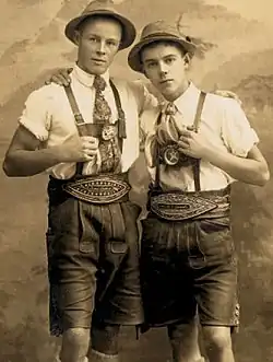 - le premier est le secteur du luxe avec des marques autrichiennes et italiennes qui jouent sur le créneau des vêtements traditionnels ou tendance folklore. Les vêtements façon costume folklorique se vendent très bien en Autriche car ils rappellent le rôle identitaire du look traditionnel alpin qui plaît beaucoup dans un pays qui mise clairement sur le tourisme international. Les échos des touristes étrangers dans les pays alpins germanophones font quasi systématiquement allusion au cadre authentique et chaleureux qu’ils ont vécu pendant leur séjour : belles maisons, beaux costumes, beaux chapeaux etc. Les fleurs dans les décolletés des femmes en dirndl, les plumes ou panaches sur le chapeau tyrolien et la broderie aux tiges de plume de paon sur le torse des hommes attirent le regard intrigué du visiteur. Une impression de respect des traditions en ressort le plus souvent. La mode du vêtement folkloriste marche très bien dans les trois pays germanophones et le Tyrol du Sud au-delà même des régions alpines concernées.