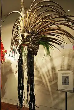 La pièce la plus connue est peut-être la coiffe dite de Montezuma. Malgré son nom, les recherches prouvent qu'elle n'était pas porté par l'empereur aztèque. Il s'agit probablement d'une image car elle ressemble à celle de Quetzalcóatl décrite dans le Codex Magliabechiano. L'original se trouve au Musée d'ethnologie de Vienne. Une réplique réalisée avec des techniques authentiques est réalisée pour le musée de l'anthropologie de Mexico[27].