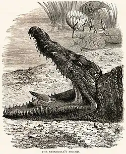 - ↑ "WP00955 Nile Crocodile (Crocodylus niloticus) with Egyptian Plover or Crocodile Bird (Pluvianus aegyptius)". Warren Photographic. Retrieved 25 February 2015. "WP00955 Nile Crocodile (Crocodylus niloticus) with Egyptian Plover or Crocodile Bird (Pluvianus aegyptius) - digital reconstruction of popular myth attributed to Herodotus, 5th Century BC. Africa"
