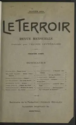- ↑ Le Terroir, École littéraire de Montréal, janvier 1909, 32 p. Consulté le 18 mars 2024.