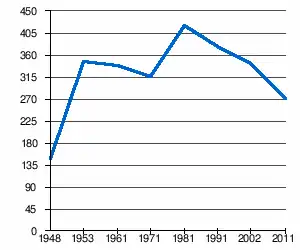 - 1 2 (sr + en) « Livre 20 : Vue d'ensemble comparative de la population en 1948, 1953, 1961, 1971, 1981, 1991, 2002 et 2011, données par localités) » [PDF], pages du recensement de 2011 en Serbie - Institut de statistique de la république de Serbie, (consulté le )