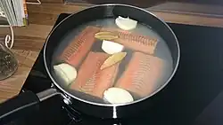 - ↑ Cuisson température inférieure à celle d’une ébullition tumultueuse.