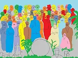 Les personnages identifiés[1] sur la pochette de l'album sont indiqués par un numéro ; toutefois deux d'entre eux ont été effacés.