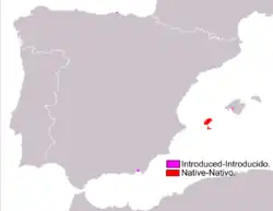 Cette espèce est endémique des îles Baléares en Espagne[1]. Elle se rencontre à Ibiza, Es Vedrá et à Formentera et a été introduite à Majorque.
