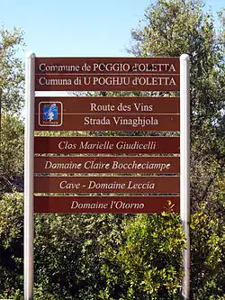 La route D 268 qui traverse les grands champs de vigne des crus précités, est signalée A strada vinaghjola (Route des Vins).