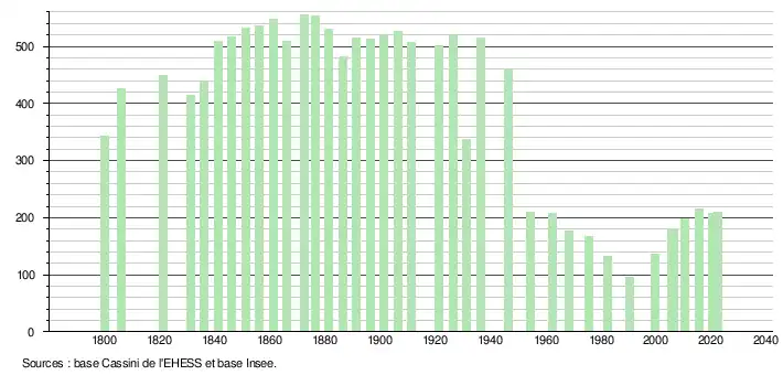 - ↑ Fiches Insee - Populations de référence de la commune pour les années 2006, 2007, 2008, 2009, 2010, 2011, 2012, 2013, 2014, 2015, 2016, 2017, 2018, 2019, 2020, 2021 et 2022.