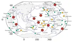 - ↑ Antretter, M.; Riisager, P.; Hall, S.; Zhao, X.; and Steinberger, B. (2004). Modelled palaeolatitudes for the Louisville hot spot and the Ontong Java Plateau, in Origin and Evolution of the Ontong Java Plateau Geological Society, London, Special Publications, v. 229, p. 21-30. DOI 10.1144/GSL.SP.2004.229.01.03.