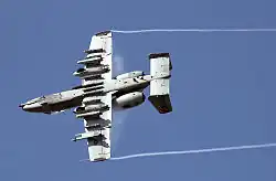 McDonnell Douglas F-15E Strike Eagle avec armes et réservoirs largables sous les ailes, et réservoirs conformes sous les emplantures.