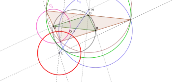 - ↑ G. de Longchamps, « Sur un nouveau cercle remarquable du plan du triangle », Journal de Mathématiques spéciales, vol. 5, , p. 57–60 (lire en ligne). Voir section 4, "détermination du centre de Δ", pp. 58–59.