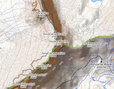 | Voie la plus facile | Par le passage du Dérochoir ou depuis les chalets de Sales | ||