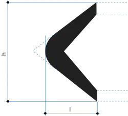 Les paramètres qui définissent la pointe de flèche, à savoir sa hauteur h et sa longueur l dépendent de la hauteur de composition Hc et de la longueur du panneau :