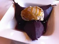 La poire à la beaujolaise ou poire au vin est un dessert traditionnel du vignoble du Beaujolais (cuisine bourguignonne, cuisine lyonnaise). Les poires au vin sont également typiques de La Rioja, de León et des régions de Castille, en Espagne[1],[2],[3],[4],[5], ainsi que du Piémont, en Italie.