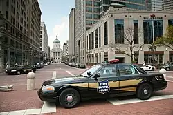 La police d'État est chargée de faire appliquer les lois locales de l'État qui ont été votées par la législature de chaque État[5]. Elles vont ainsi s'occuper de la police routière ou de délits et de crimes graves ne relevant pas de la compétence des polices de comté[5]. La décision de créer une police dans un État est de la compétence de la législature de cet État et son budget est voté par le Congrès de l'État fédéré.