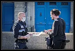 Contrôle d'un policier municipal de la Ville de Bordeaux durant la pandémie de Covid-19 de 2020.