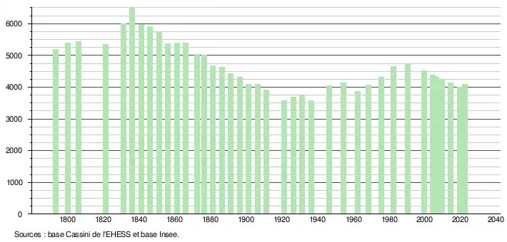 - ↑ Fiches Insee - Populations de référence de la commune pour les années 2006, 2007, 2008, 2009, 2010, 2011, 2012, 2013, 2014, 2015, 2016, 2017, 2018, 2019, 2020, 2021 et 2022.