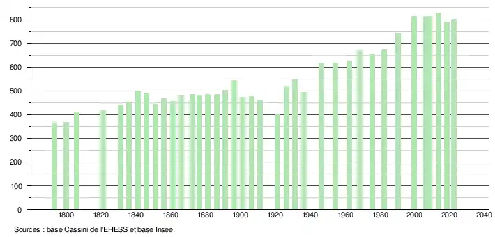 - ↑ Population municipale de référence en vigueur au 1er janvier 2025, millésimée 2022, définie dans les limites territoriales en vigueur au 1er janvier 2024, date de référence statistique : 1er janvier 2022.
