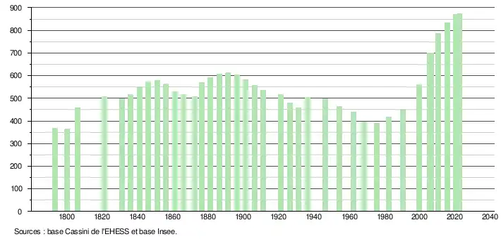 - ↑ Fiches Insee - Populations de référence de la commune pour les années 2006, 2007, 2008, 2009, 2010, 2011, 2012, 2013, 2014, 2015, 2016, 2017, 2018, 2019, 2020, 2021 et 2022.