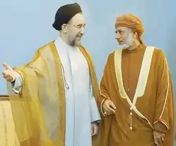 Dans sa politique étrangère, le sultanat s’est plusieurs fois démarqué de ses voisins en maintenant une position très indépendante. La religion dominante étant l'islam ibadite, troisième branche de l’Islam après le sunnisme et le chiisme, le sultanat d'Oman se tient à l'écart des rivalités religieuses déterminées par ces deux courants dominants[11]. Les Ibadites sont surnommés les « démocrates de l’islam » et se distinguent de l’islam radical notamment par leur pluralisme ethnique et religieux, les juifs comme les chrétiens ayant toujours bénéficié à Oman d'une tolérance singulière dans le Golfe[11]. Ces particularités permettent à Oman d'entretenir des bonnes relations aussi bien avec l'Arabie Saoudite qu'avec l'Iran, dans un contexte de guerre froide entre ces deux puissances, ainsi qu'avec les pays occidentaux, la Chine, l'Inde, et la Russie[11].
