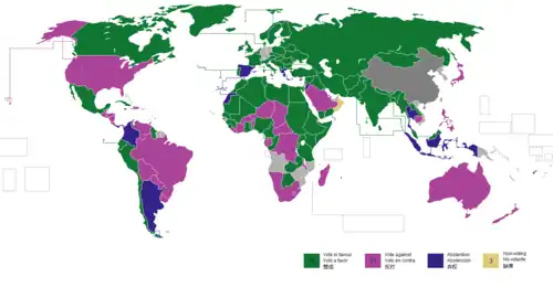 | Oui[62] | Actuellement reconnu par 102 membres de l'ONU, la république de Chine, les Îles Cook, Nioué et l'ordre souverain de Malte, revendiqué par la Serbie. | |
