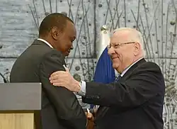 En , le Premier ministre israélien Benjamin Netanyahu se rend au Kenya et rencontre Uhuru Kenyatta[55]. Les deux chefs d'État annoncent une coopération accrue dans la lutte contre le terrorisme, et vantent leur coopération en tant qu'alliés naturels[55].