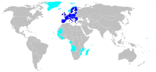 - Pays et territoires d'outre-mer (PTOM), dépendants d'un État membre mais hors-UE