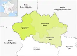 Le département français de l'Allier est un département créé le en application de la loi du , à partir de la majeure partie de l'ancienne province du Bourbonnais et d'un certain nombre de paroisses du nord de l'Auvergne. Les 317 actuelles communes, dont presque toutes sont regroupées en intercommunalités, sont organisées en 19 cantons permettant d'élire les conseillers départementaux. La représentation dans les instances régionales est quant à elle assurée par 11 conseillers régionaux. Le département est également découpé en 3 circonscriptions législatives et est représenté au niveau national par trois députés et deux sénateurs.