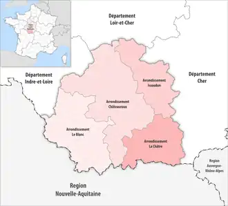 La préfecture de l'Indre est localisée à Châteauroux. Le département possède en outre deux sous-préfectures à Le Blanc, La Châtre et Issoudun.