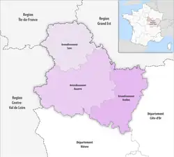Le département français de l'Yonne est un département créé le en application de la loi du , à partir des anciennes provinces de Bourgogne, Champagne, de l'Orléanais et du Nivernais. Les 423 actuelles communes, dont presque toutes sont regroupées en intercommunalités, sont organisées en 21 cantons permettant d'élire les conseillers départementaux. La représentation dans les instances régionales est quant à elle assurée par 12 conseillers régionaux. Le département est également découpé en 3 circonscriptions législatives, et est représenté au niveau national par trois députés et deux sénateurs.