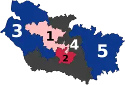 Depuis le nouveau découpage électoral, le département comprend cinq circonscriptions regroupant les cantons suivants :
