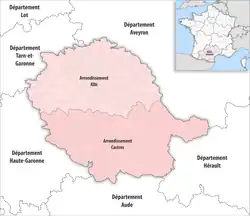 La préfecture du Tarn est localisée à Albi. Le département possède en outre une sous-préfecture à Castres. Jusqu'en 1926, le département possédaient deux arrondissements supplémentaires à Gaillac et Lavaur.
