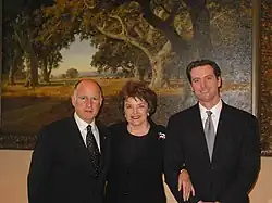Le gouverneur Jerry Brown, avec le lieutenant-gouverneur Gavin Newsom et la sénatrice fédérale Dianne Feinstein.