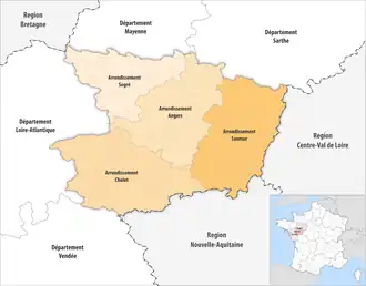 La préfecture du Maine-et-Loire est localisée à Angers. Le département possède en outre deux sous-préfectures à Cholet, Saumur et Segré-en-Anjou Bleu. Jusqu'en 1926, une sous-préfecture supplémentaire était située à Baugé.