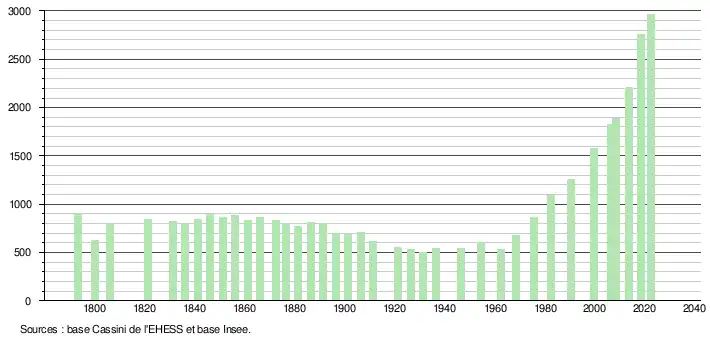 - ↑ Fiches Insee - Populations de référence de la commune pour les années 2006, 2007, 2008, 2009, 2010, 2011, 2012, 2013, 2014, 2015, 2016, 2017, 2018, 2019, 2020, 2021 et 2022.
