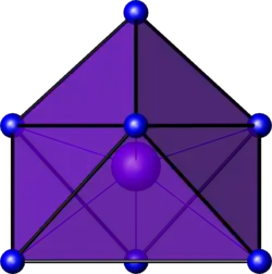 | 9 | prisme trigonal à trois faces carrées coiffées | ![]() | Pr dans PrZr3F15[25], Sr dans SrCl2·6H2O[26] | |