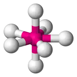 | 5 | bipyramide trigonale | ![]() | Fe dans le pentacarbonylfer(0) Fe(CO)5 | K dans K3Sb[11] |